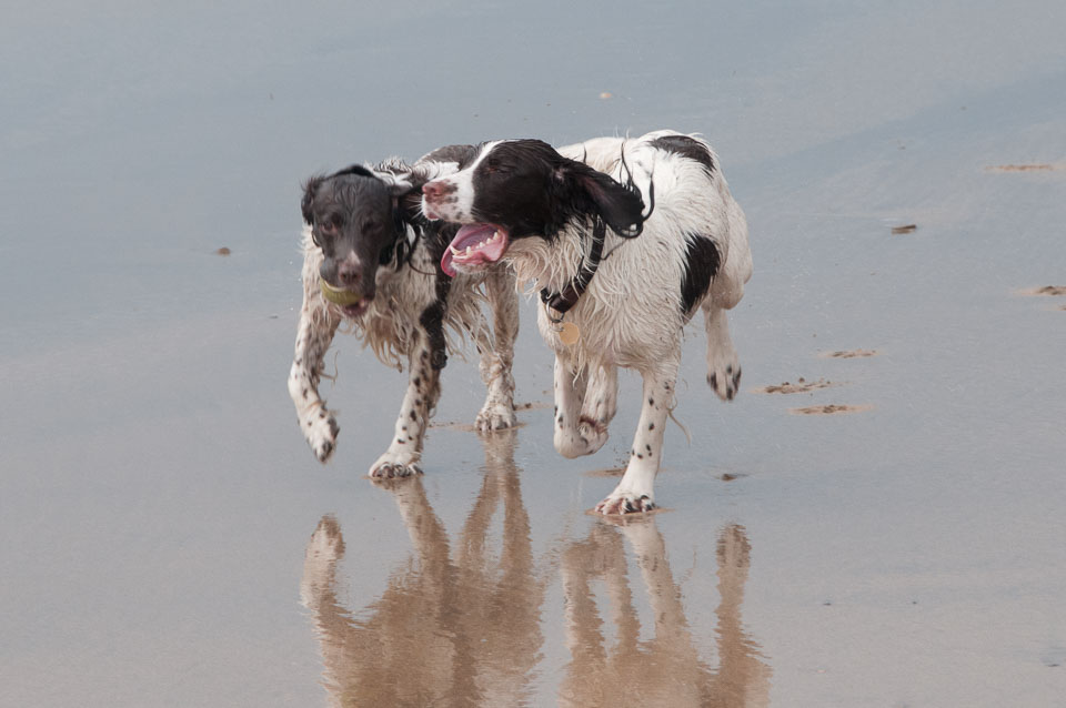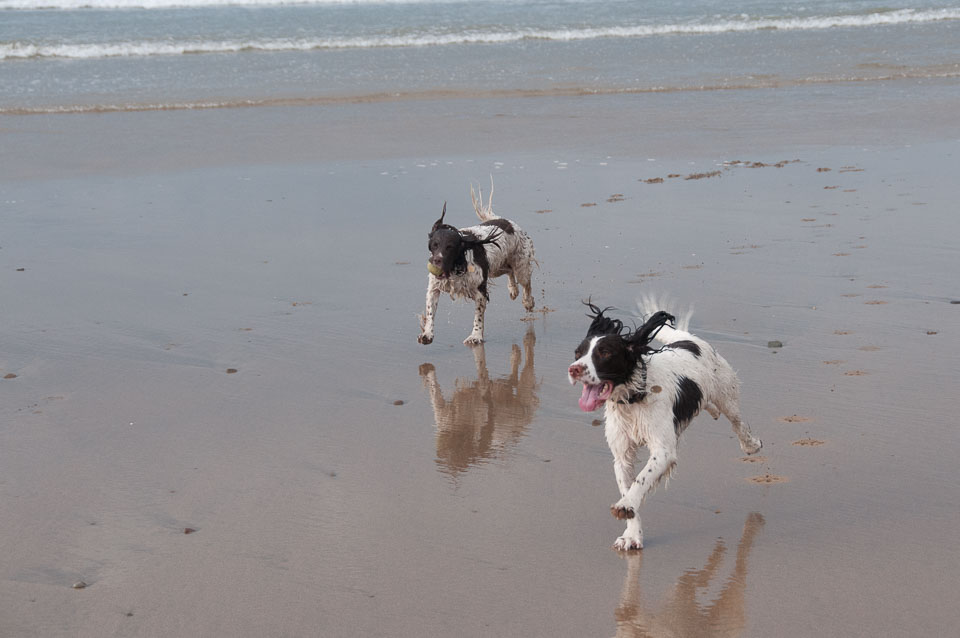 Pictures of Frankie and Dave's Springer Spaniels, Tinker and Scamp, when they visited in November 2011. Taken on various beaches (Bude, Westward Ho!, Crackington Haven) and at Roadford Lake.
