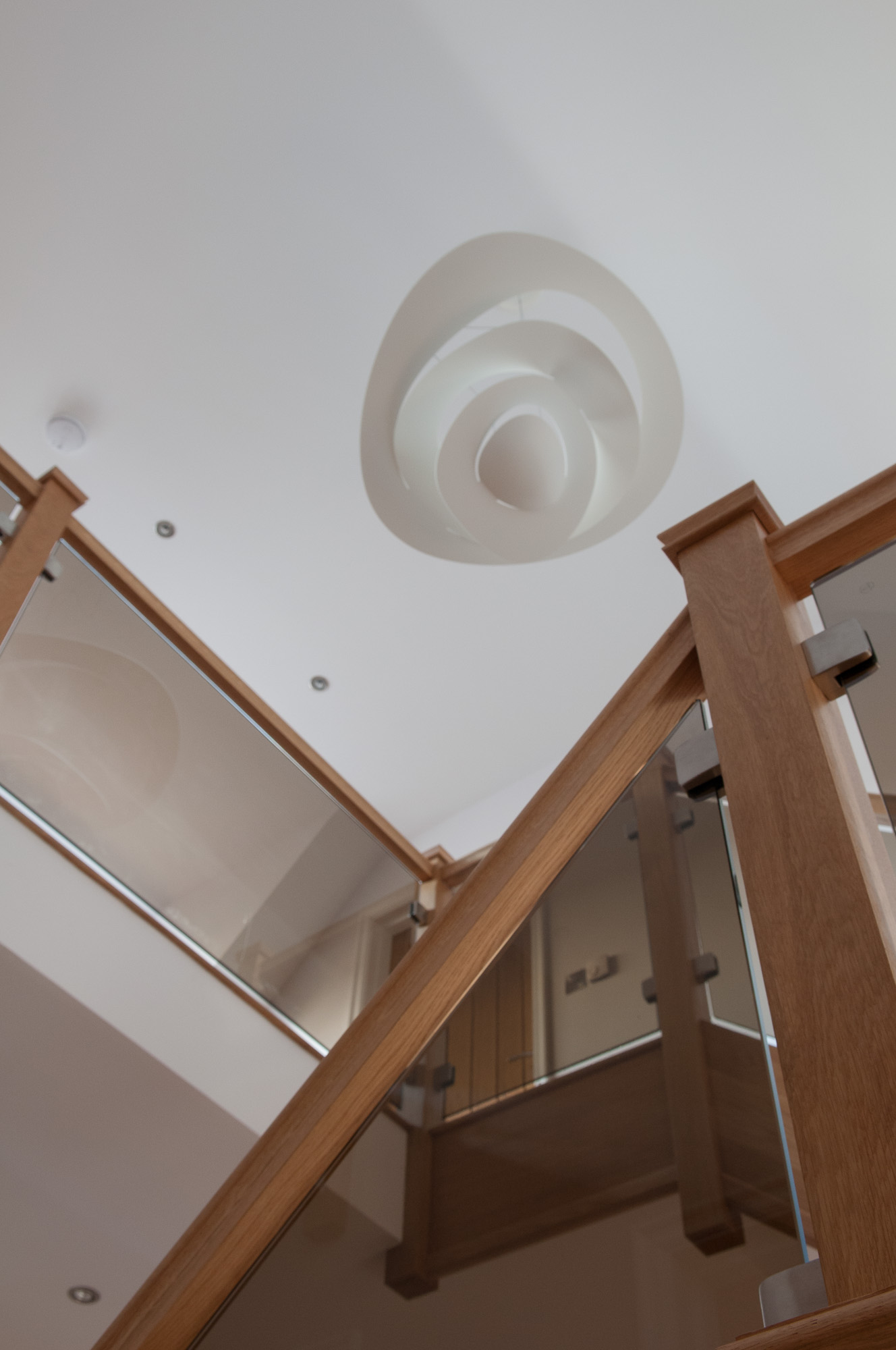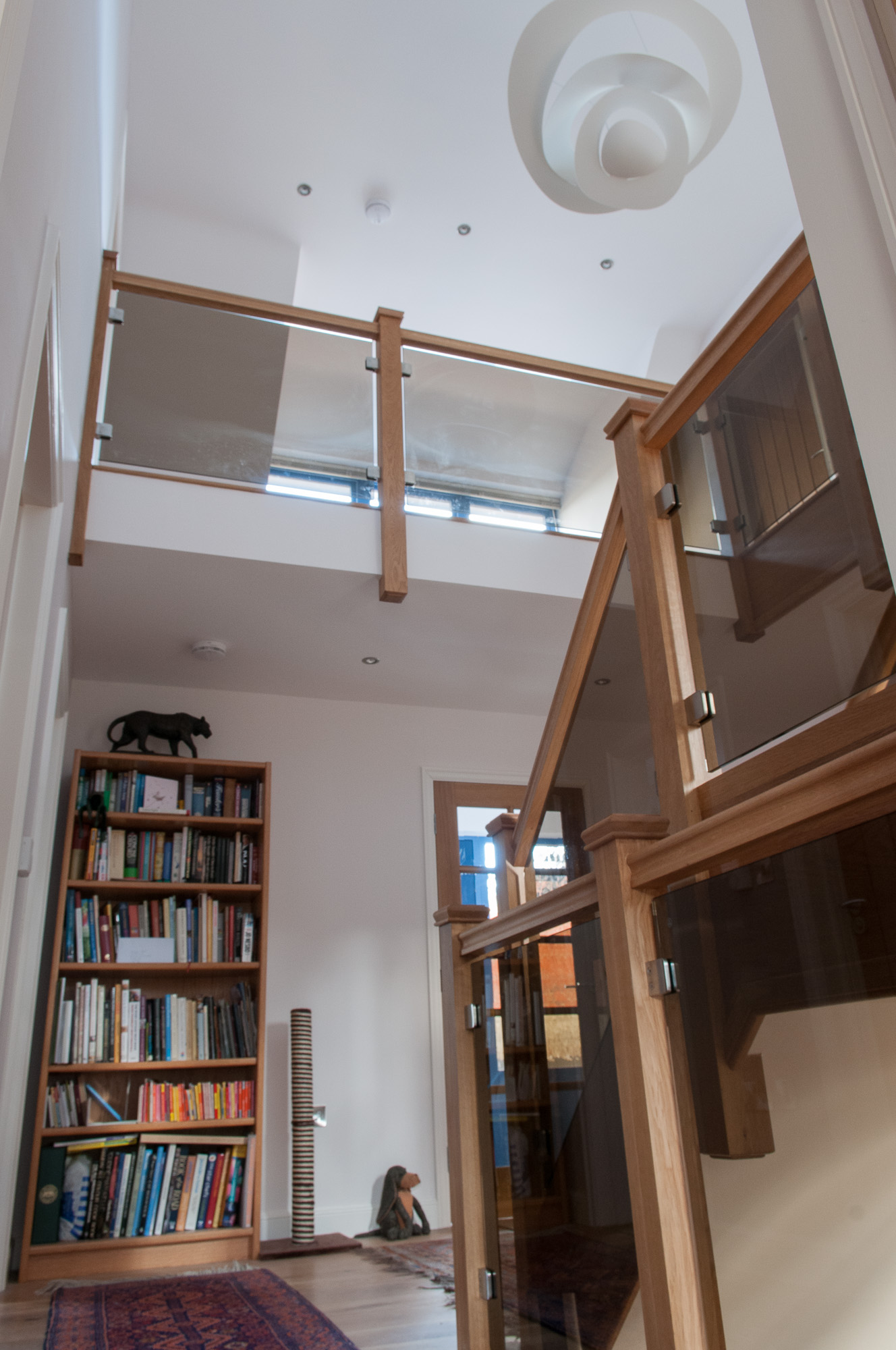 Photographs showing the oak and glass staircase in our new house in Holsworthy