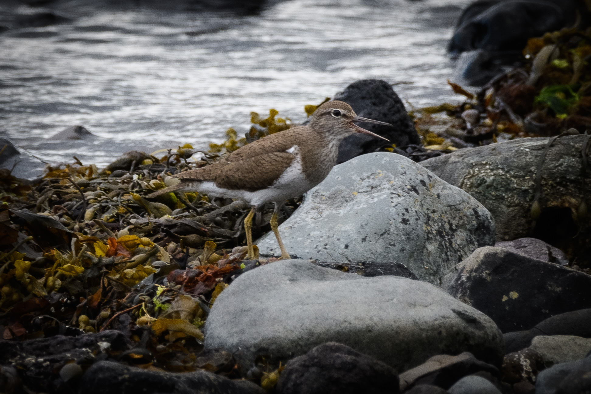 We had been searching for an otter most of the day, and were heading back to the house. We drove (painfully) slowly along the northern edge of Loch Scridain, peering into each bay and beach in the hope of seeing the tell-tale splash of an otter. Finally, we stopped to look at a heron, and the sandpiper also in the photgraphs. And then we saw the splash. Thankfully, the otter stayed around for a while, obviously fishing, and obligingly climbed out on to the rocks directly in front of us. Memorable.