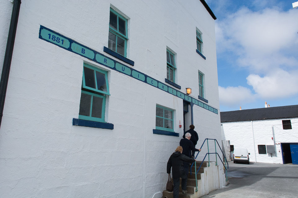 Photographs from tours at 2 distilleries on Islay, Laphroaig and Bruichladdich. The differences between the two are interesting. Laphroaig is one of the few distilleries that still does a significant proportion (in this case, 20%) of its own malting. Otherwise, it's a medium-scale, somewhat automated operation, using some modern technology. Bruichladdich is rather smaller, does not make its own malt, but focuses on keeping everything else local - Islay barley through to bottling at the distillery.