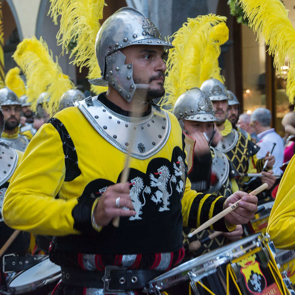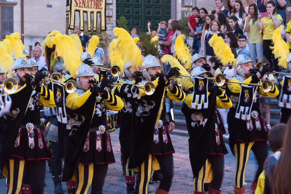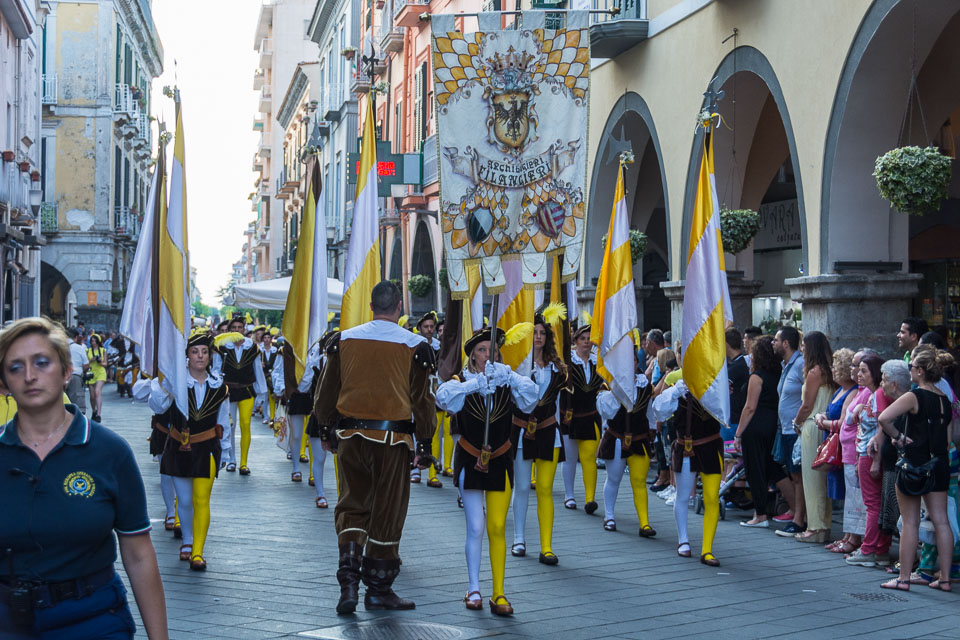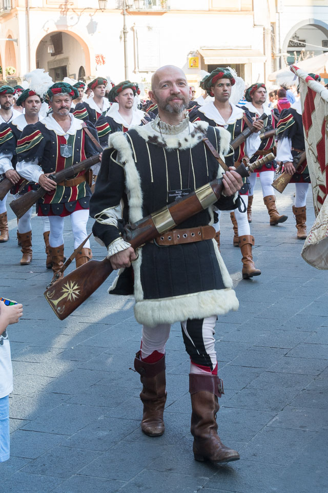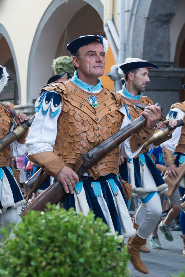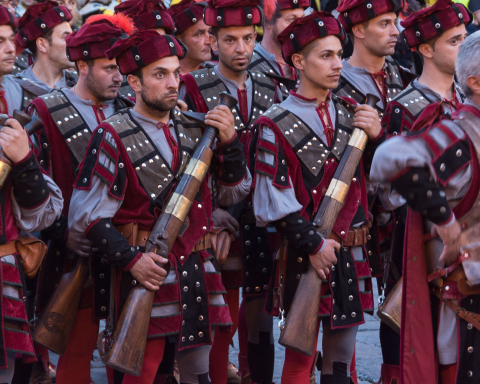 Photographs of the parades by the Trombonieri from the hamlets comprising Cava de' Tirreni, in Campania, and of the Disfida dei Trombonieri - marching and firing their arquebuses.